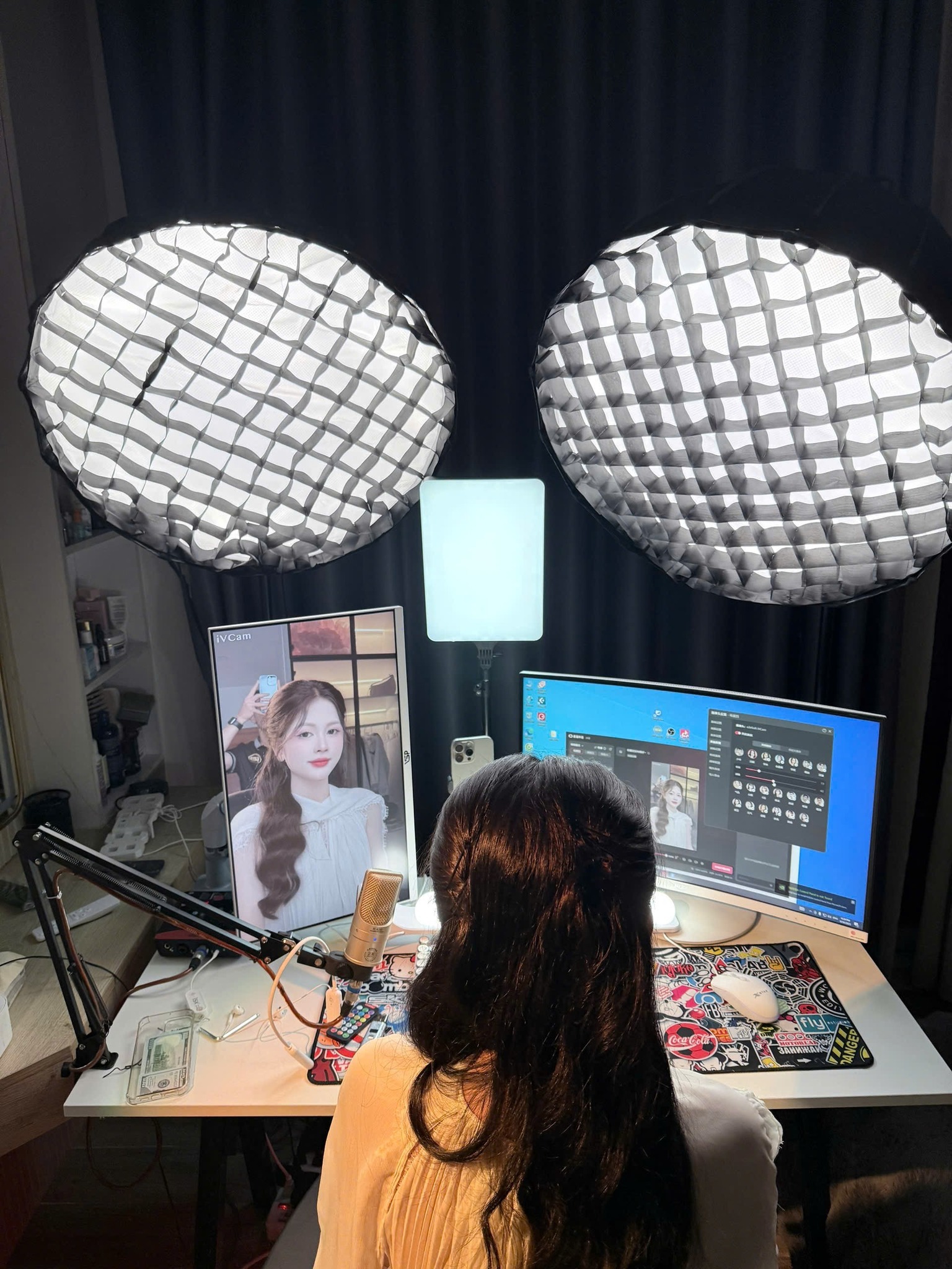 - Setup livestream bán hàng (TikTok, Shopee): Gói này tập trung tối đa vào độ sáng và độ chi tiết của sản phẩm. Hệ thống camera thường được đặt ở khung hình dọc, sử dụng ống kính có khả năng xóa phông nhẹ để làm nổi bật chủ thể. Đặc biệt, chúng tôi tích hợp các thiết bị hỗ trợ tương thực thời gian thực, giúp người bán dễ dàng đọc comment và phản hồi nhanh chóng.